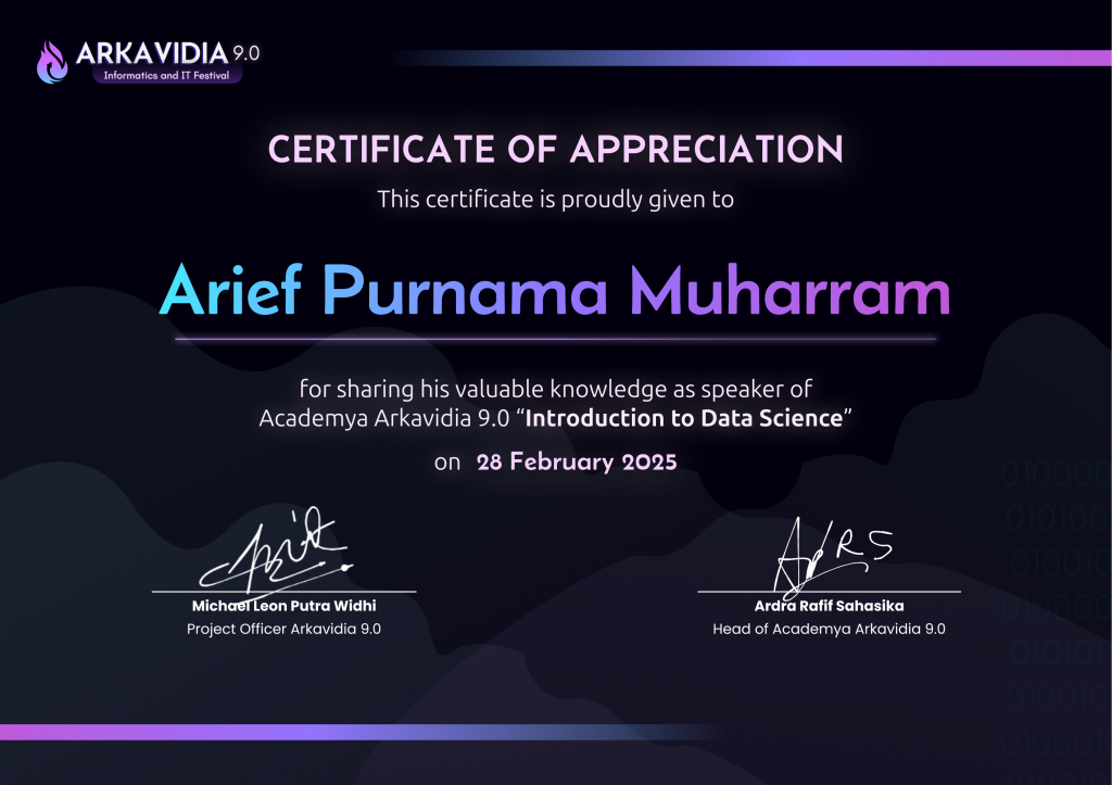 At Arkavidia 9.0, we hosted a webinar titled “Introduction of Data Science in the Age of AI”, where we explored the transformative potential of artificial intelligence and its applications in healthcare. Our session aimed to inspire and educate participants about the intersection of AI and data science, and how these technologies are shaping the future of healthcare.